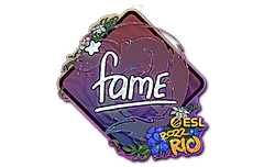 The Sticker | fame (Glitter) | Rio 2022 was designed by Valve and added to the game on October 21st, 2022 as part of alongside "Rio 2022 Stickers" update. It’s main color is purple