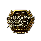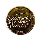 This gold sticker was autographed by professional player Christopher Alesund playing for Ninjas in Pyjamas at Berlin 2019.