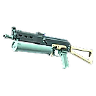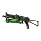 The Chemical Green - The Bizon SMG is low-damage, but offers a uniquely designed high-capacity drum magazine that reloads quickly. It has been painted solid colors in grey and garish green.