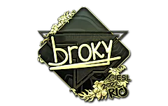 Sticker | broky (Gold) | Rio 2022 suunniteltiin Valve toimesta ja lisättiin peliin October 21st, 2022 osana yhdessä "Rio 2022 Stickers" päivityksen kanssa.Sen pääväri on gold