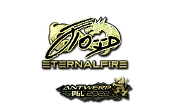 This gold sticker was autographed by professional player Yasin Koc playing for Eternal Fire at the PGL Antwerp 2022 CS:GO Major Championship.