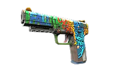 The Fall Hazard - Highly accurate and armor-piercing, the pricy Five-Seven is a slow-loader that compensates with a generous 20-round magazine and forgiving recoil. A multicolored custom paint job which reads "FALL" and "CONSTRUCTION" has been applied. Mind the gap