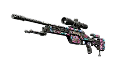 The Fever Dream - The SSG08 bolt-action is a low-damage but very cost-effective sniper rifle, making it a smart choice for early-round long-range marksmanship. It has been custom painted with manic pink, blue, and purple drawings on a black base. H@@HH@H@H@HA!!