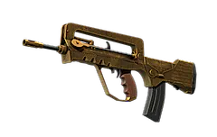The Commemoration - A cheap option for cash-strapped players, the FAMAS effectively fills the niche between more expensive rifles and the less-effective SMGs. It has been custom painted gold and features various details celebrating 20 years of Counter-Strike. Here's to 20 more