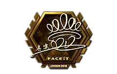 This gold sticker was autographed by professional player Hui Wu playing for Tyloo at London 2018. 50% of the proceeds from the sale of this sticker support the included players and organizations.