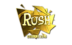 O Sticker | RUSH (Gold) | Cologne 2016 foi criado por Valve e adicionado ao jogo em July 4th, 2016 junto com a atualização "Cologne 2016 – Group Stage".
