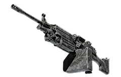 The Midnight Palm - A strong open-area LMG, the M249 is the perfect choice for players willing to trade a slow fire rate for increased accuracy and a high ammo capacity. It has been spray-painted with black palm fronds over a gray and purple camo. "The sign says closed!"