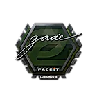 Sticker | gade | Berlin 2019由Valve设计,并在August 14th, 2019作为一部分与"Berlin 2019 – Tournament Items"更新一起加入游戏。